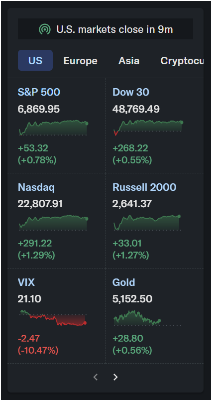 - S&P 500 – 1% ga ko‘tarildi va hafta bo‘yicha ijobiy hududga chiqdi