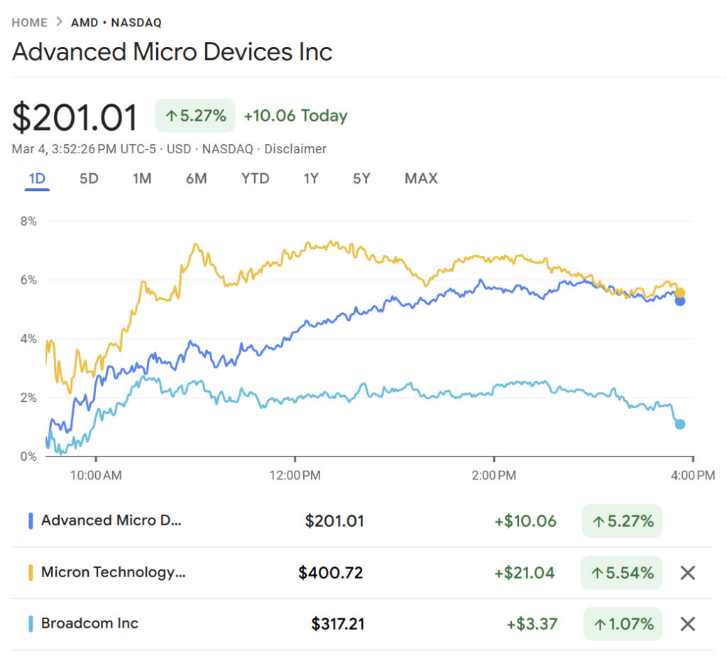 - Advanced Micro Devices (AMD) – 6% ga yaqin ko‘tarildi