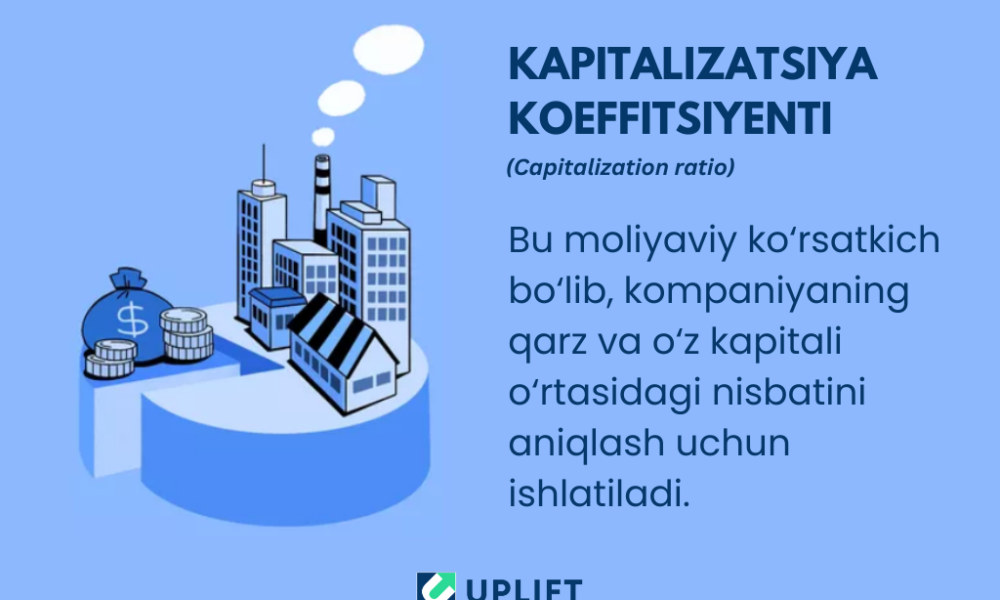 Kapitalizatsiya koeffitsiyenti kompaniyaning moliyaviy strategiyasini baholashda muhim ko‘rsatkich bo‘lib, investorlar uchun kompaniyaning risk darajasini aniqlashga yordam beradi.