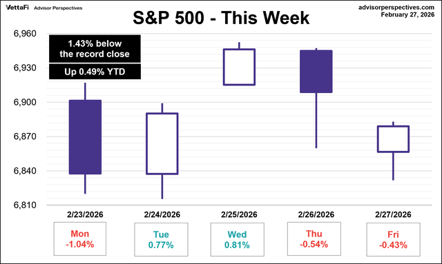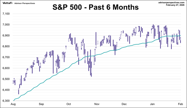 S&P 500 hafta yakunida yana 50 kunlik harakatlanuvchi o‘rtacha (MA) dan pastga tushdi va shu bilan fevral oyida ushbu muhim trend chizig‘ini yettinchi bor kesib o‘tdi. Indeks haftani −0,4% pasayish bilan yopdi va hozir 2026-yil 27-yanvardagi tarixiy maksimumidan 1,43% past darajada turibdi.