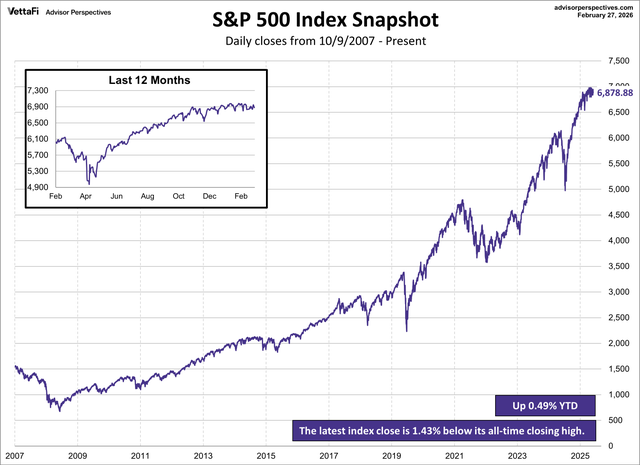 2007-yil 9-oktabr kuni S&P 500 tarixiy maksimumga chiqib, kunni 1565.15 darajada yopgan. Shundan so‘ng, 2009-yil 9-mart kuni indeks oldingi cho‘qqisidan taxminan −57% ga qulab, 676.53 darajada yopildi. Ushbu davr Global moliyaviy inqiroz nomi bilan tarixga kirgan.