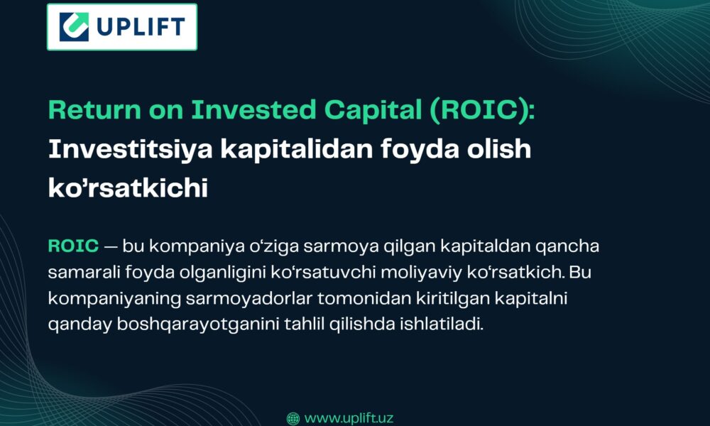 Kompaniyaning moliyaviy muvaffaqiyati faqat daromad miqdori bilan emas, balki o‘sha daromad qanday kapitaldan olinganligi bilan ham baholanadi. Shu maqsadda tahlilchilar va investorlar Return on Invested Capital (ROIC) ko‘rsatkichidan foydalanishadi. Ushbu maqolada sizga ROIC haqida batafsil ma’lumot beramiz va uni qanday hisoblashni oddiy tilda tushuntirib beramiz.