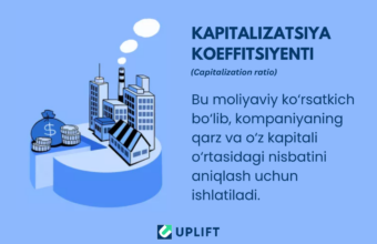 Kapitalizatsiya koeffitsiyenti nima? Kapitalizatsiya koeffitsiyenti kompaniyaning kapital tuzilmasida qarzning ulushini o‘lchovchi moliyaviy ko‘rsatkichdir. U...